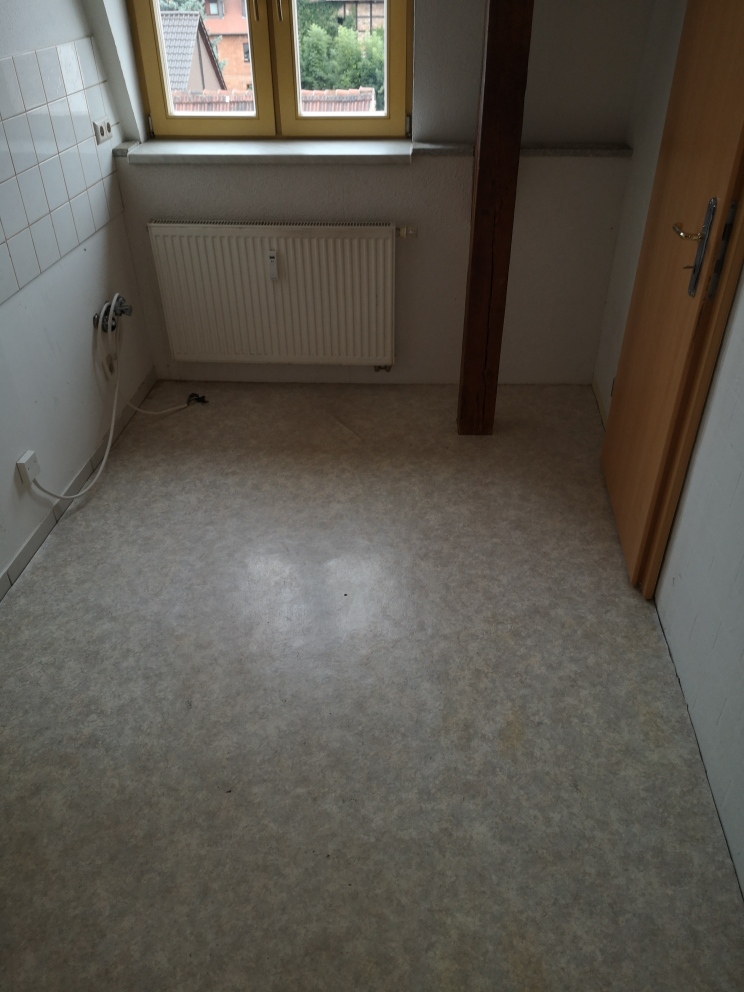 Die 3-Raumwohnung befindet sich im Dachgeschoß des Mehrfamilienhauses. Alle Wohnräume bis auf das Kinderzimmer wurden mit Laminatboden versehen. Im Kinderzimmer wurde PVC-Bodenbelag verlegt. Das Badezimmer mit Fenster ist vollständig gefliest. Die Küche mit PVC-Belag ist mit einen Fliesenspiegel ausgestattet. Ein Keller gehört ebenfalls zur Wohnung. Die Waschmaschine kann im Keller angeschlossen werden. Ein Stellplatz kann angemietet werden.