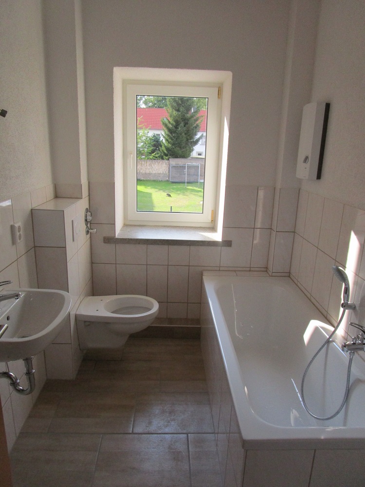 Das Tageslichtbad ist vollständig gefliest und mit einer Badewanne sowie einem WC ausgestattet.